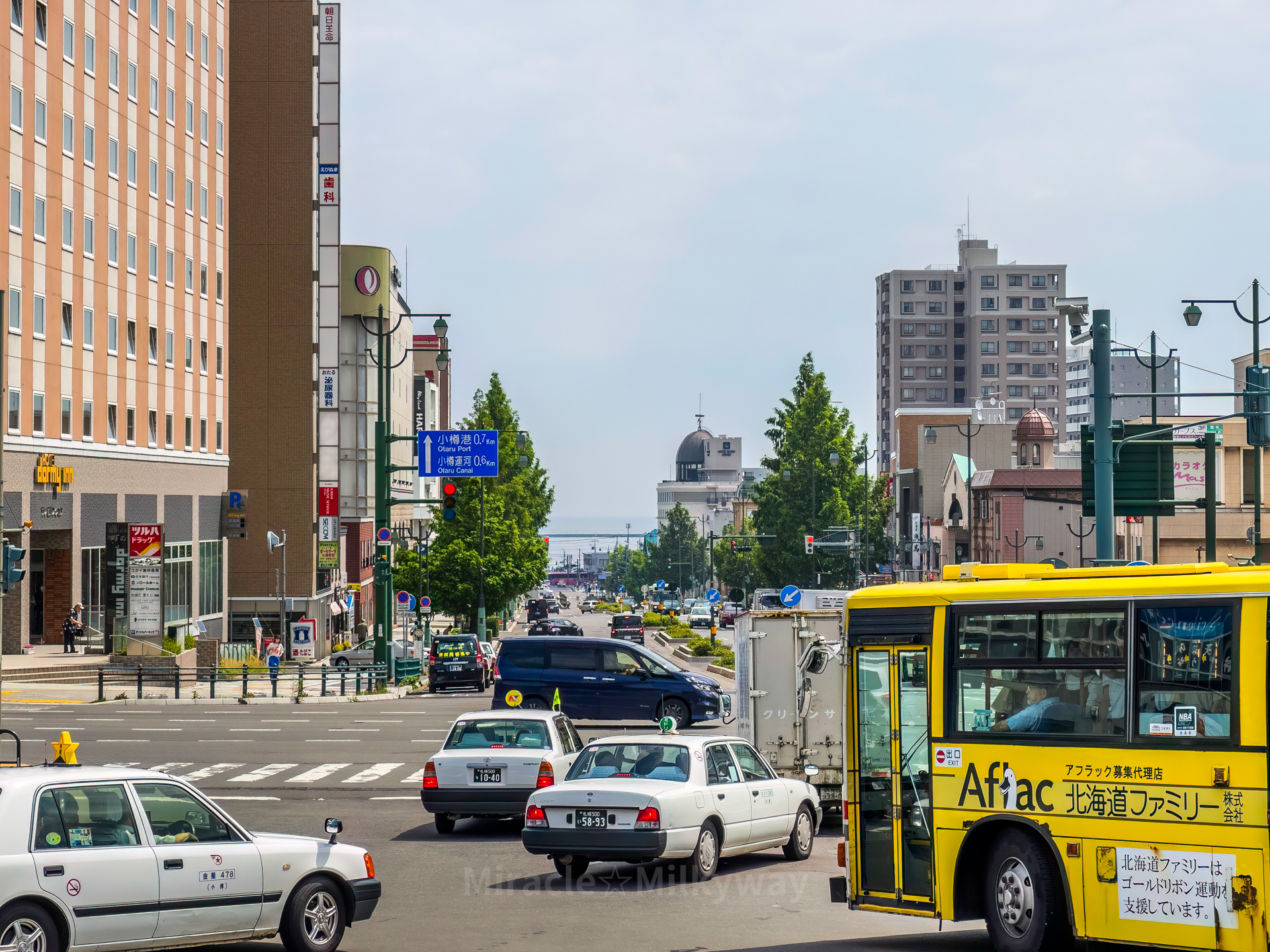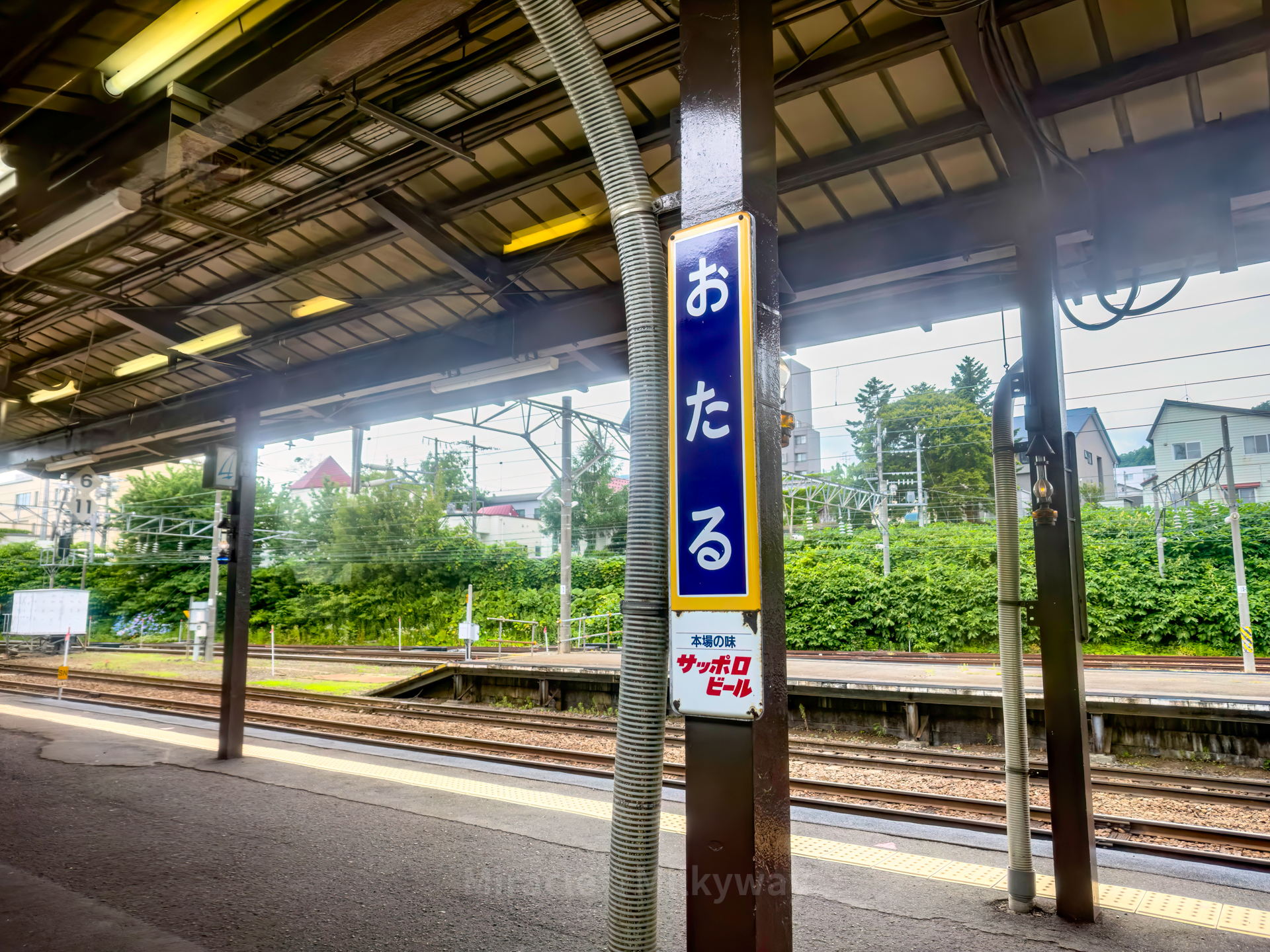 역에서 운하까지 내려가는 길에는 현재 폐선된 테미야선(手宮線)의 흔적이 있다.