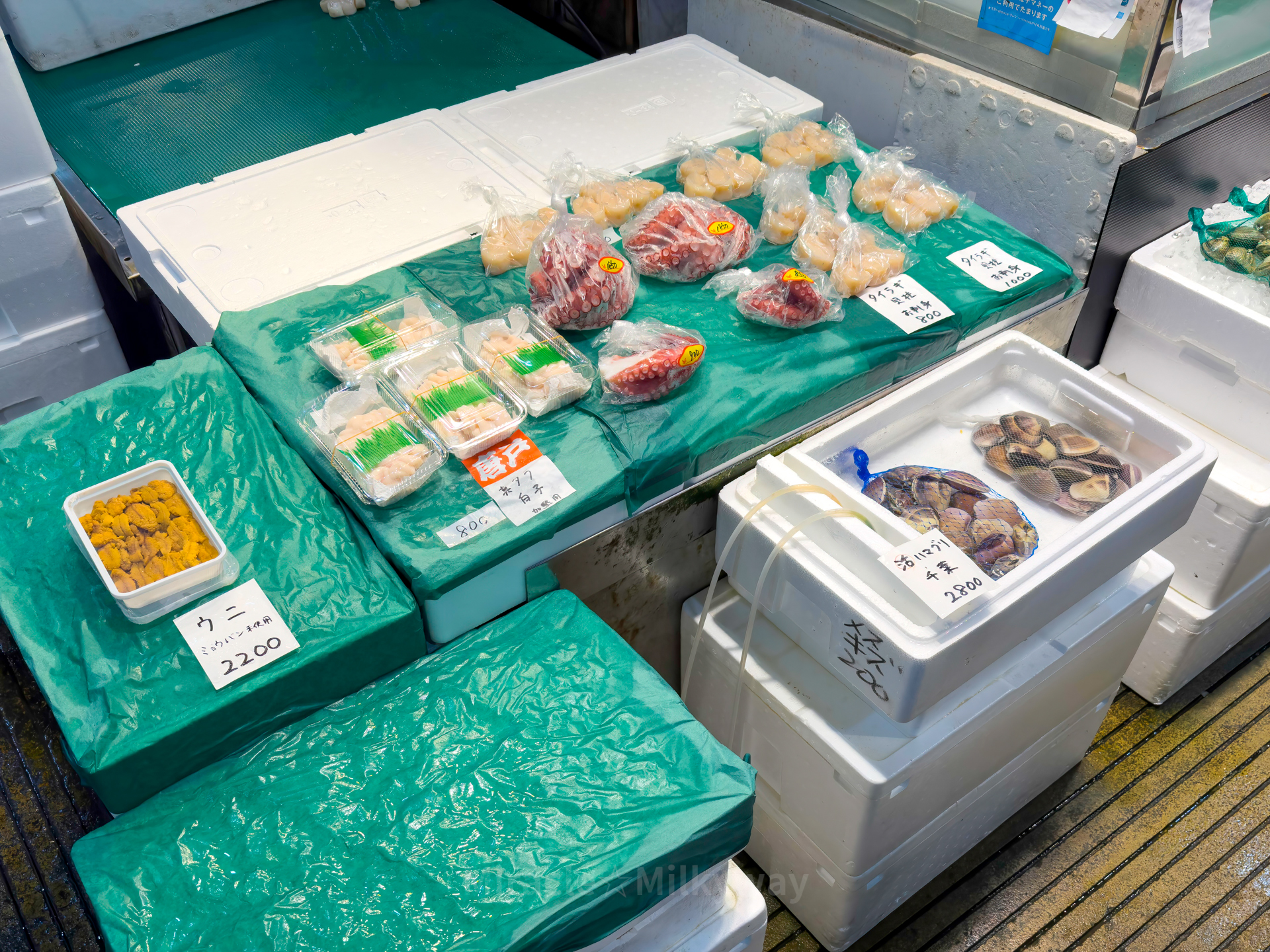 작게 다른 수산물을 파는 가게들