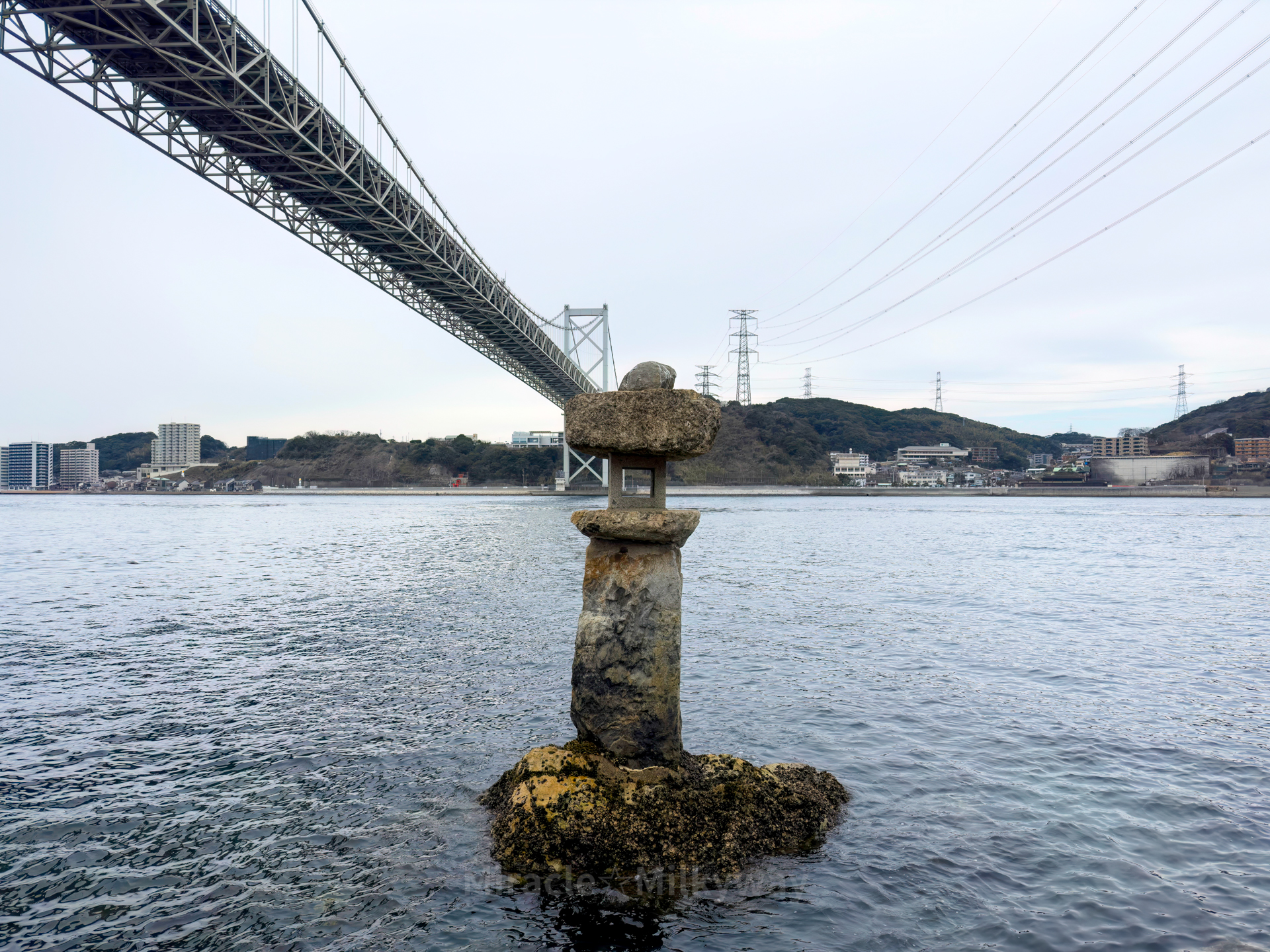 신사 앞 해변의 이 탑이 인상적이다.