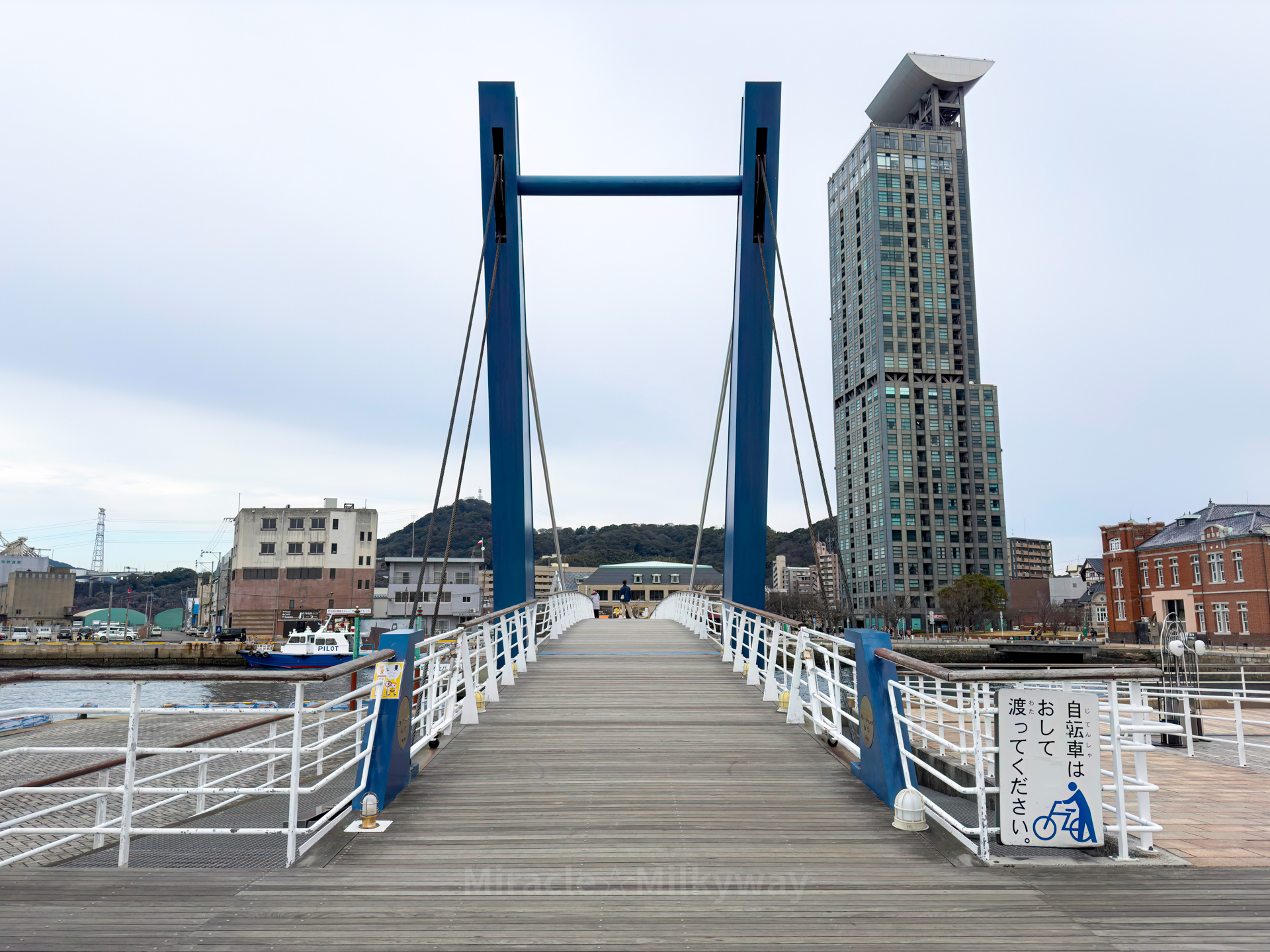 세관 앞에는 '블루윙모지'라는 보도용 도개교가 있다.
