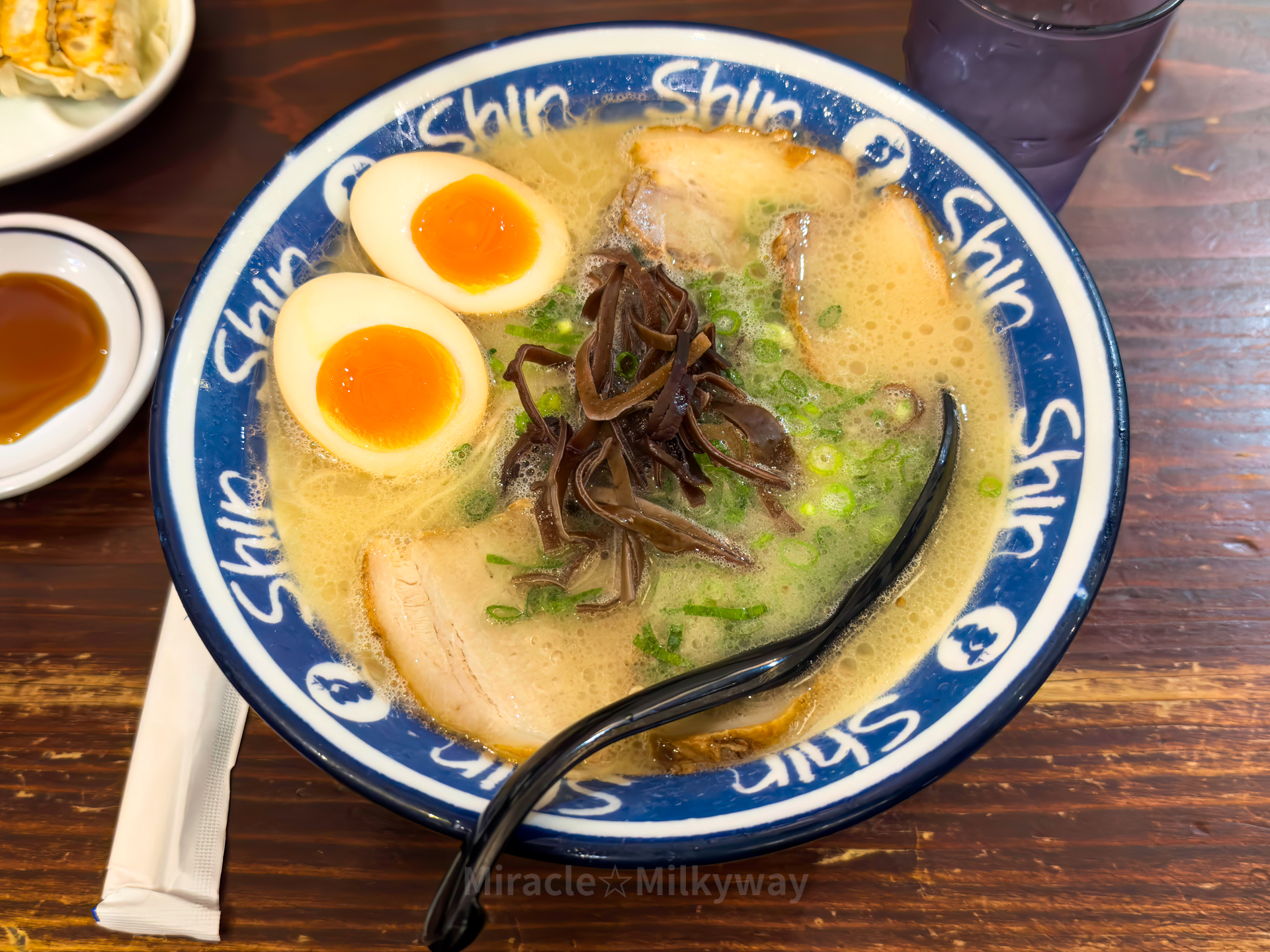 머지 않아 조금 늦은 점심으로 후쿠오카식 돈코츠 라멘을 먹었다.