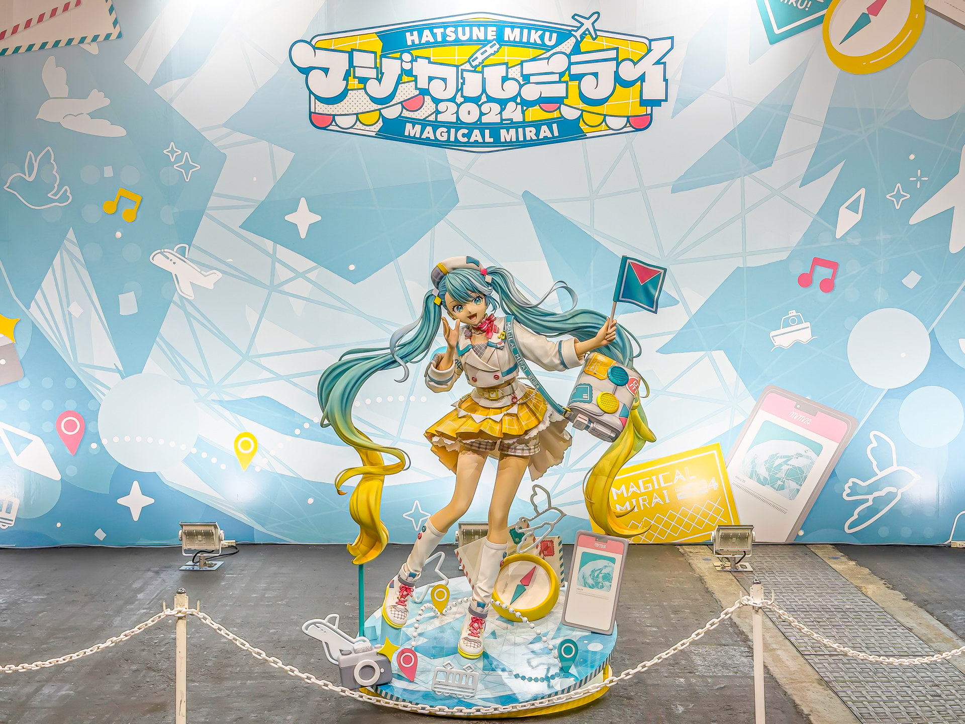 입장하자마자 보이는 매지컬미라이 2024년 디자인의 하츠네 미쿠(初音ミク) 등신대 피규어