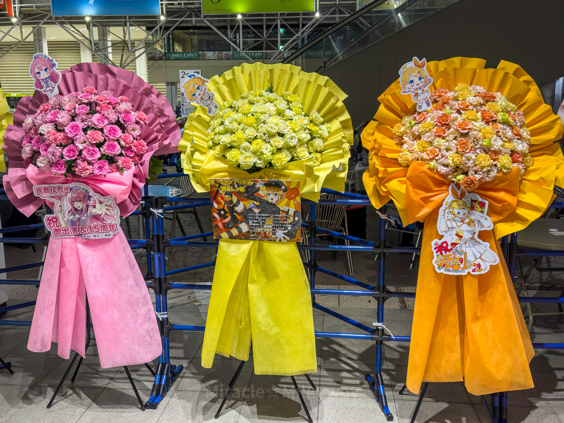 보컬로이드와 여러 캐릭터가 추가된 리듬게임, 약칭 '프로젝트 세카이(プロジェクトセカイ)'의 부스도 보인다.