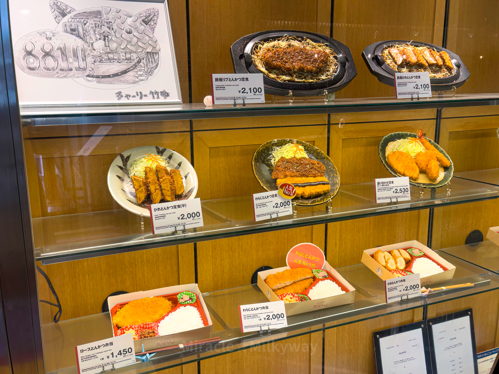 미소카츠 소스와 일반 소스를 동시에 먹을 수 있는 메뉴가 있어서 그걸로 선택. 위의 진한 색이 미소카츠로 덮힌 조각이다. 된장 향이 그렇게 진하지 않고 무난하게 맛있었다.