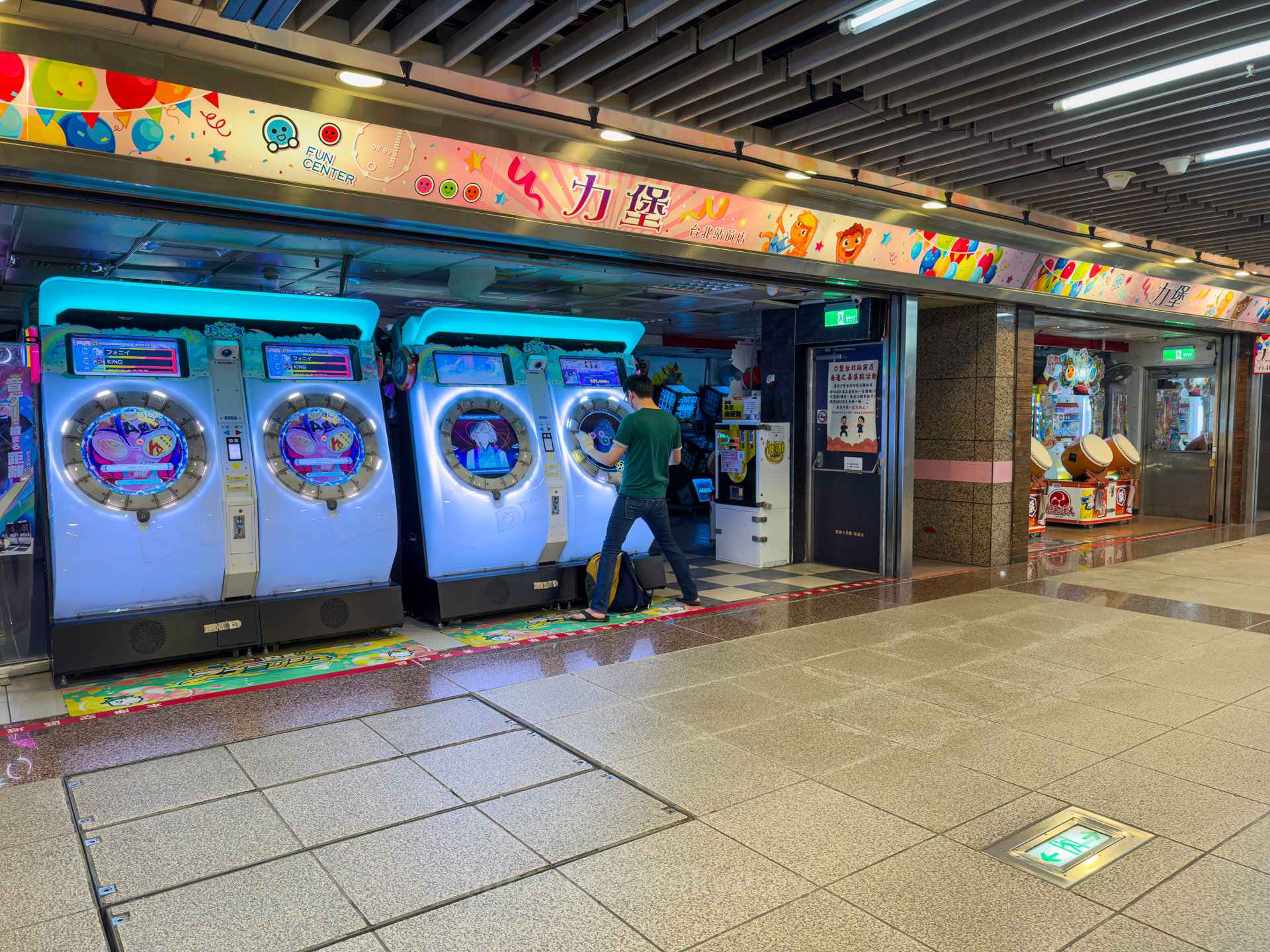 다시 전철을 타러 가는 길, 타이페이역 남부 지하상가에 있는 오락실. 여러 익숙한 리듬게임들이 보인다.