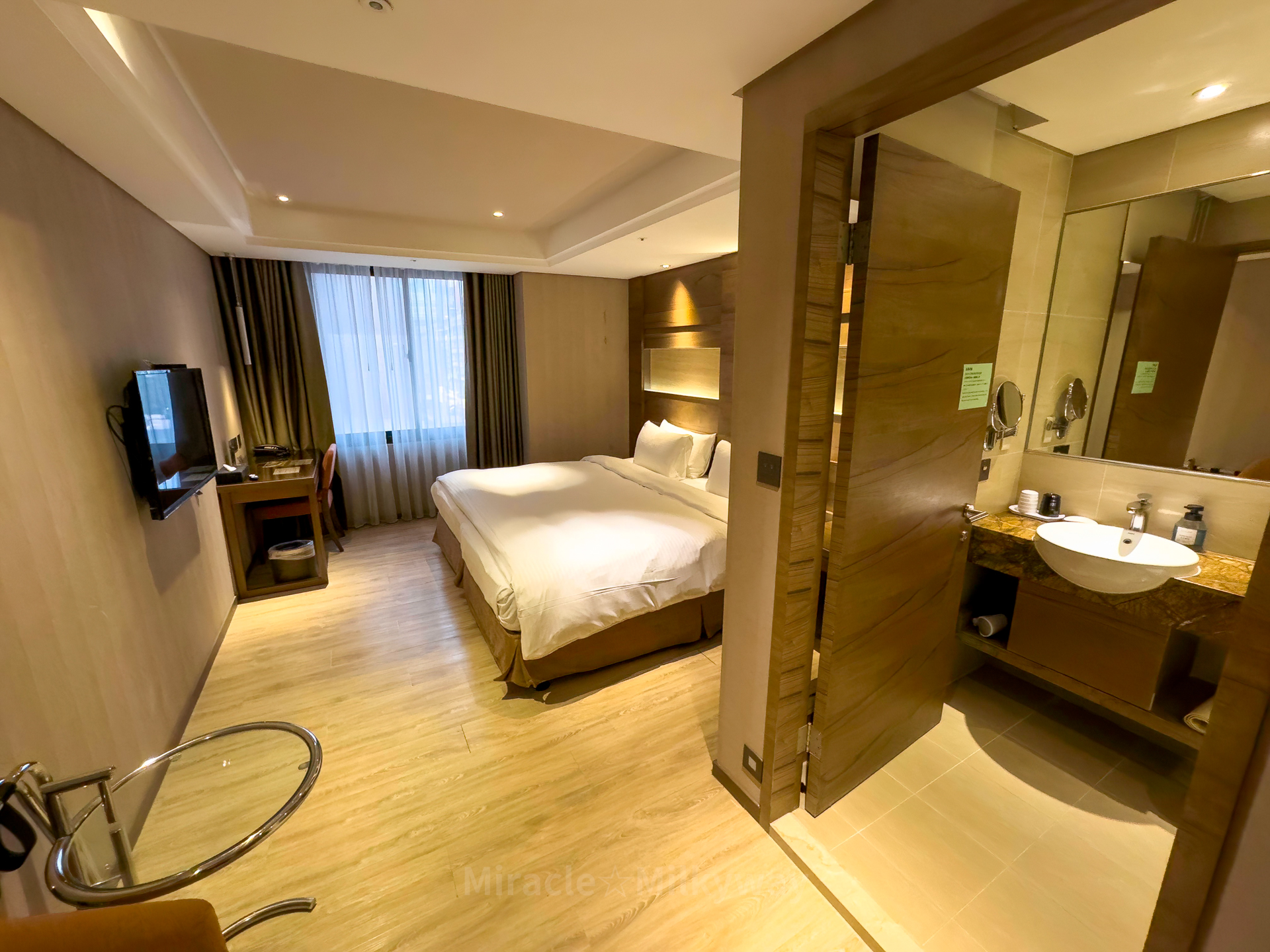 공항에서 공항철도를 타고 도착한 타이페이역 앞 호텔. 1인 트윗베드인데 방이 매우 넓고 쾌적했다.