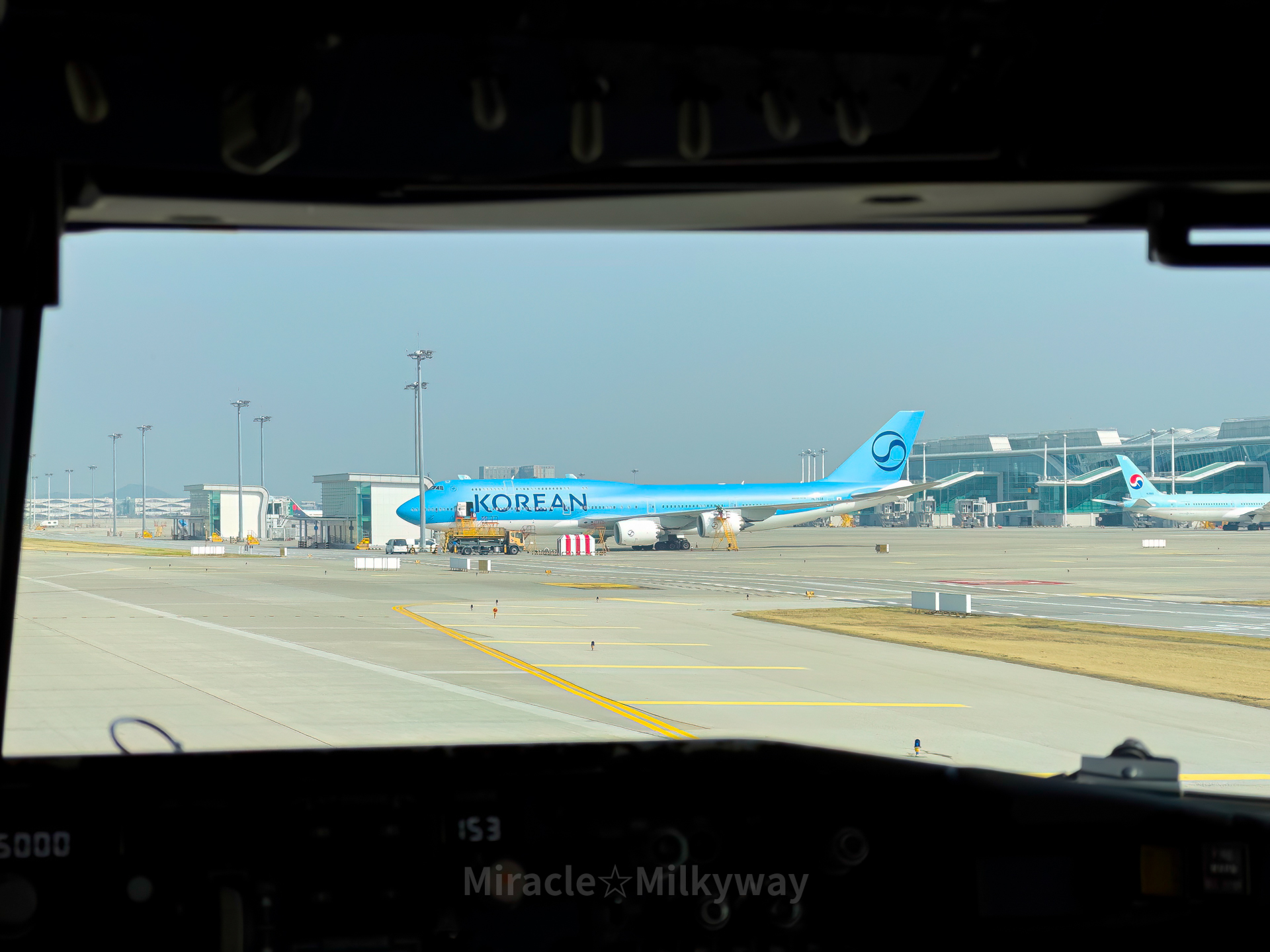 약 20분 정도를 널직한 택시웨이에서 기다리다 드디어 자리가 났다.