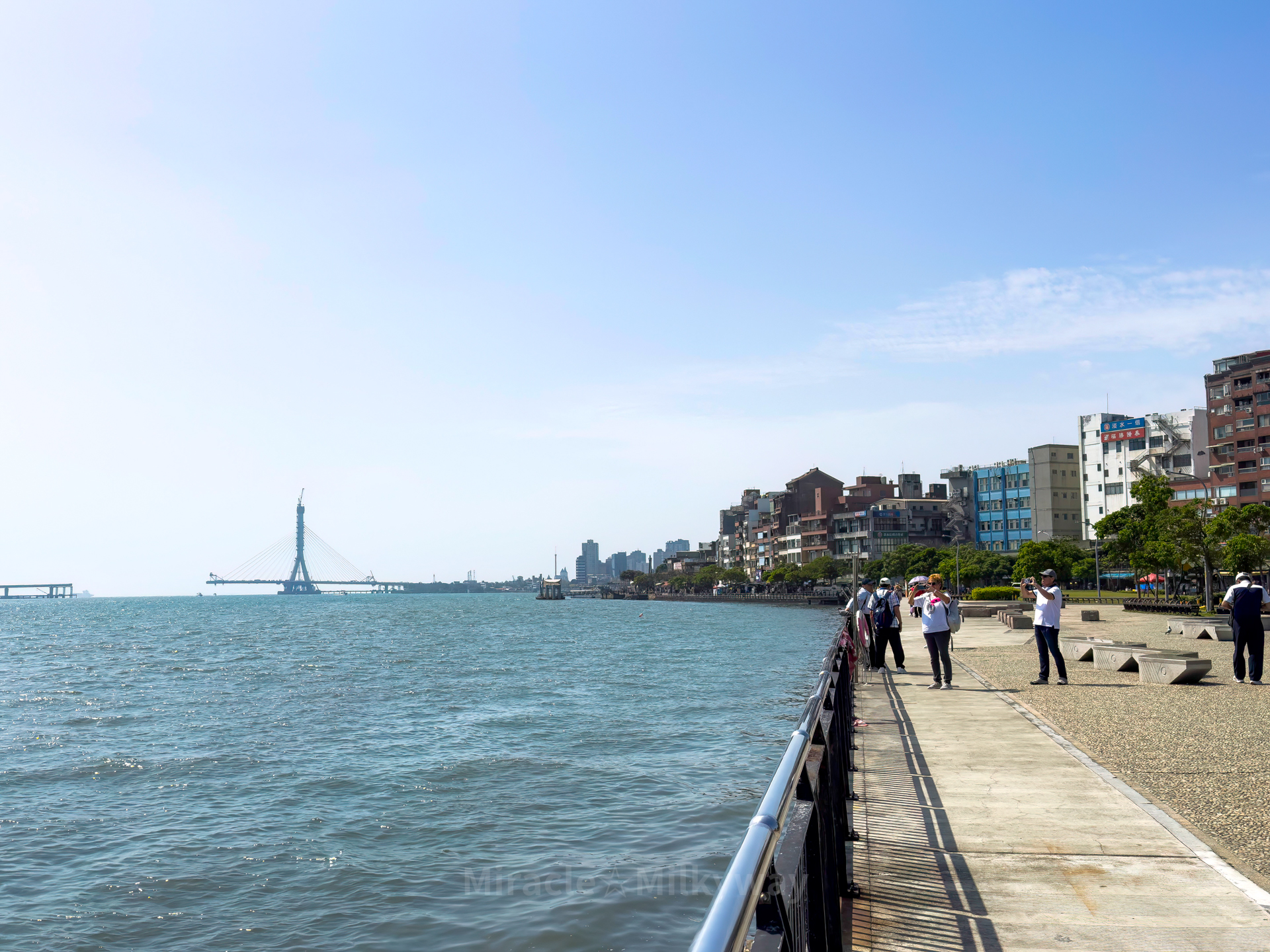 멀리 보이는 다리는 강 남쪽에서 이어진 서부빈해쾌속공로(西部濱海快速公路)와 강 북쪽의 사륜로(沙崙路)를 이으려고 지어지고 있었다.