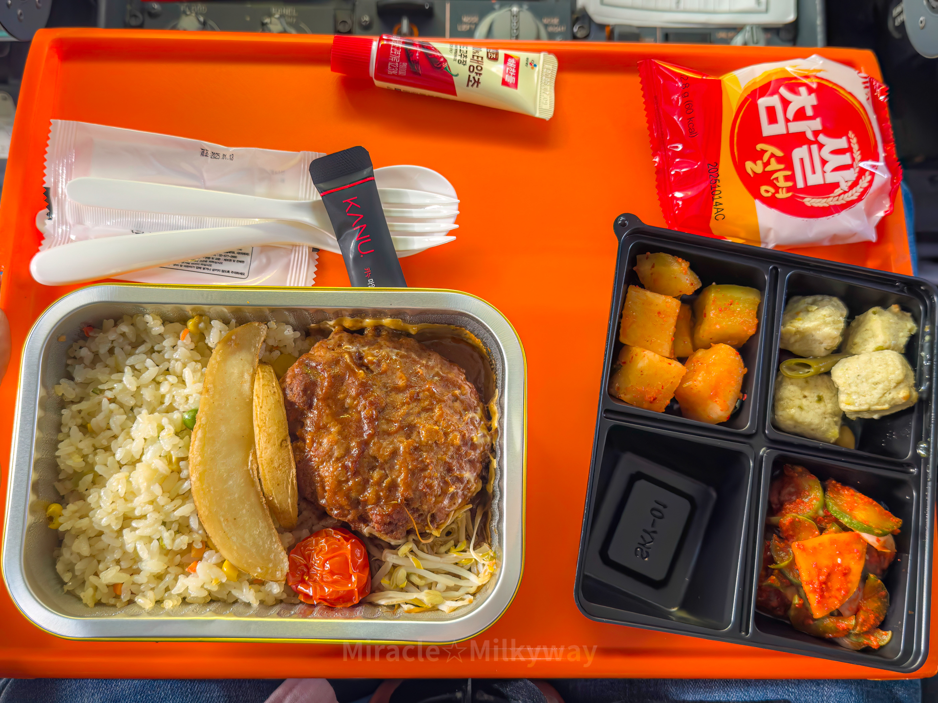 사실 기내에서 요기하려고 카페에서 핫도그를 사서 허겁지겁 탑승했다. 그런데 크루밀 핫 밀을 제공받을 줄이야. 여유분을 나눠 주신 객실승무원 분께 감사하다.