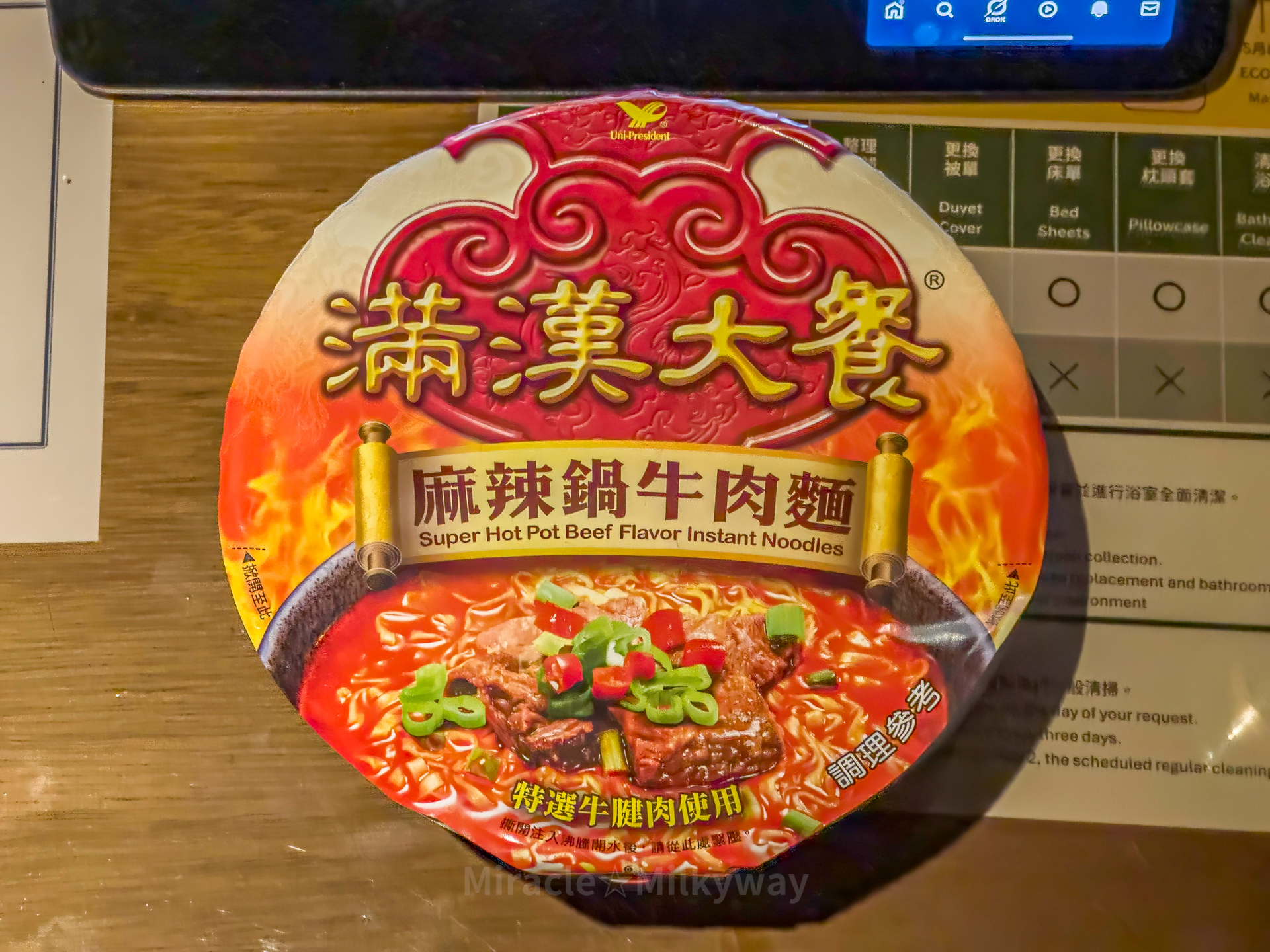 그리고 한국에도 일시적으로 수입된 적이 있는 우육면 컵라면. 역시 컵라면이라 정말 맛있었다