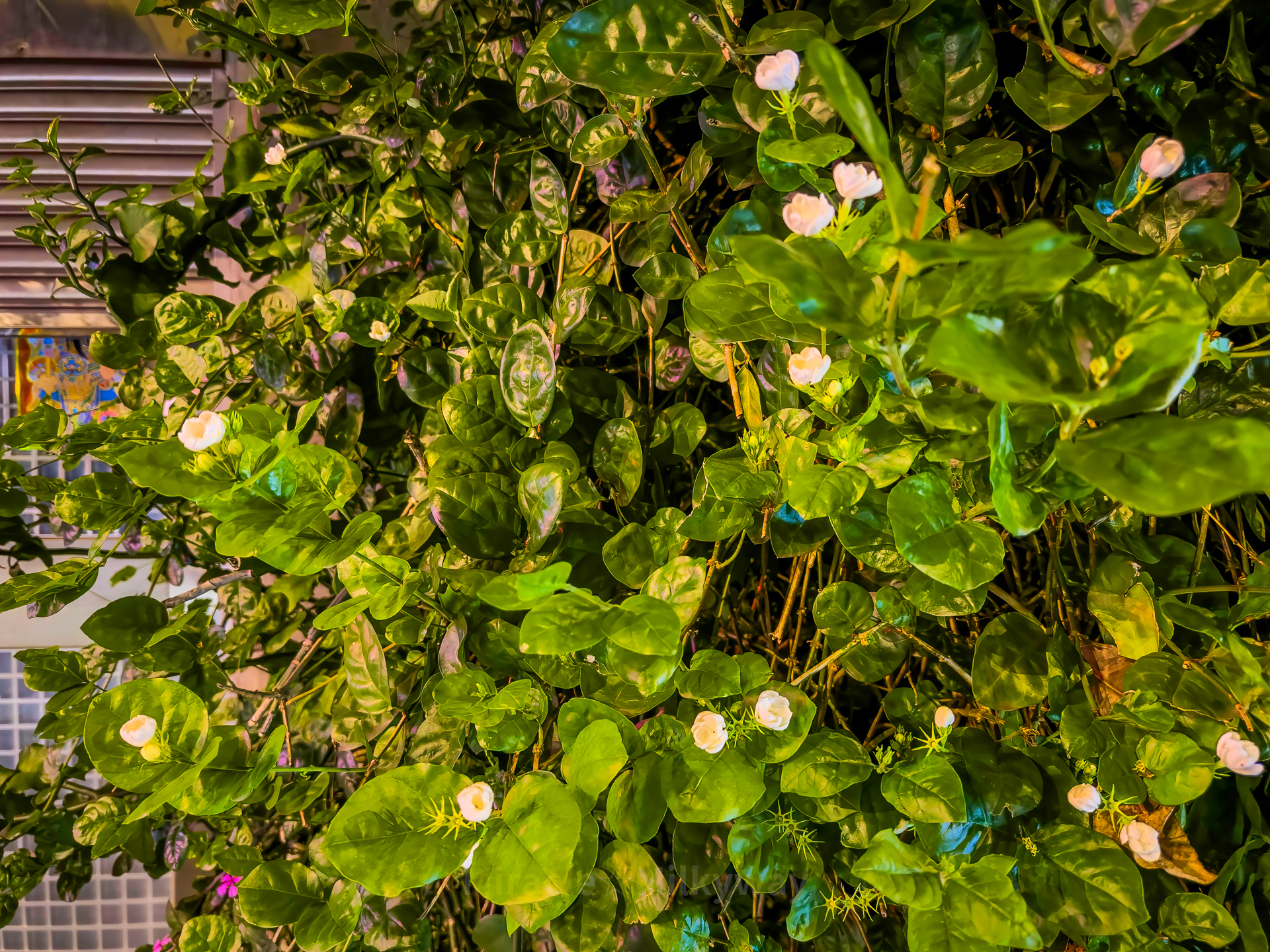 길가에서 자스민 향기가 정말 강하게 느껴져서 사진에 담았다. Jasminum sambac, 아라비안 자스민이라는 품종이라고 한다.