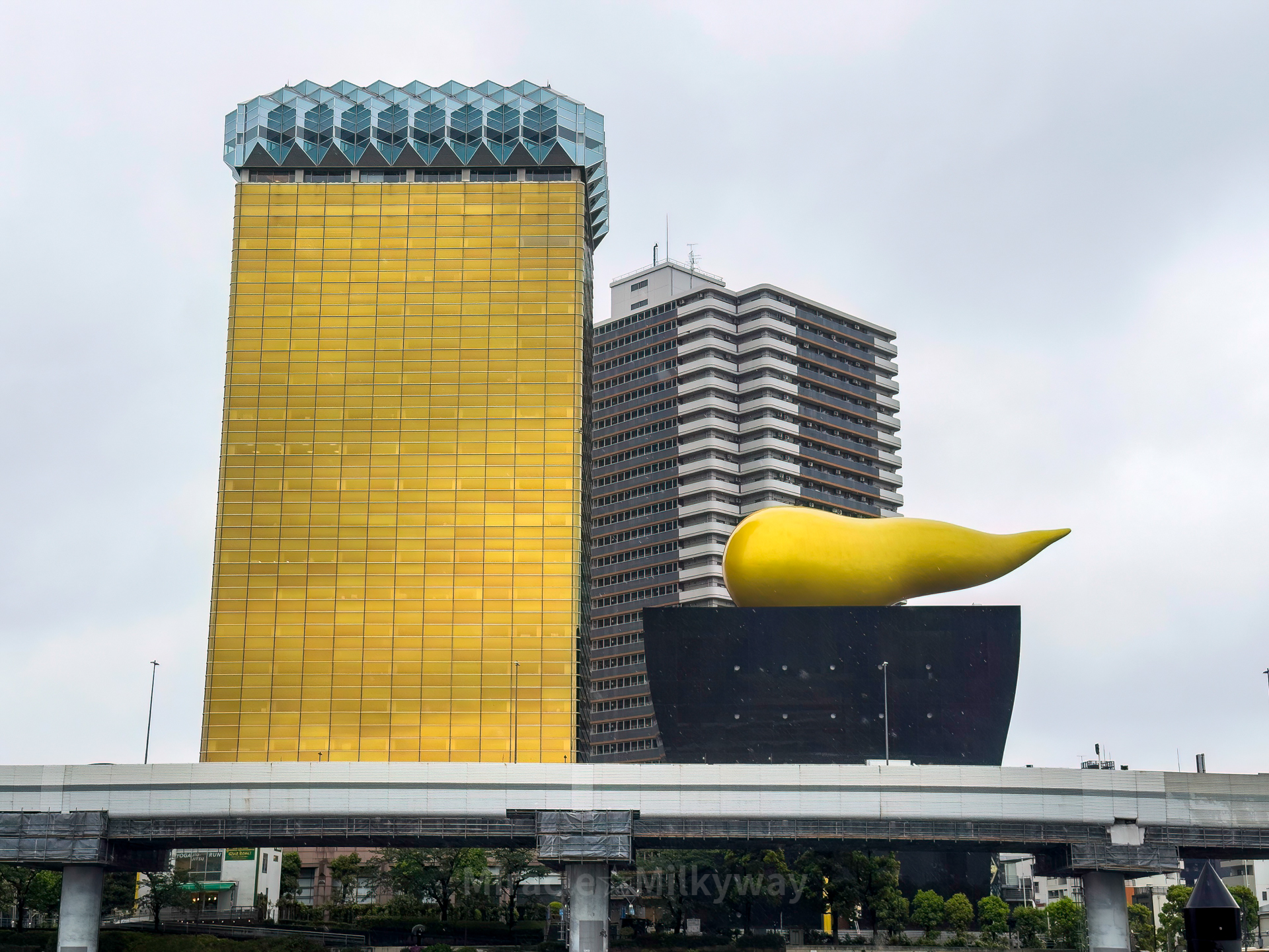 역에서 내리니 바로 강 건너에 보이는 아사히그룹 본사 건물.