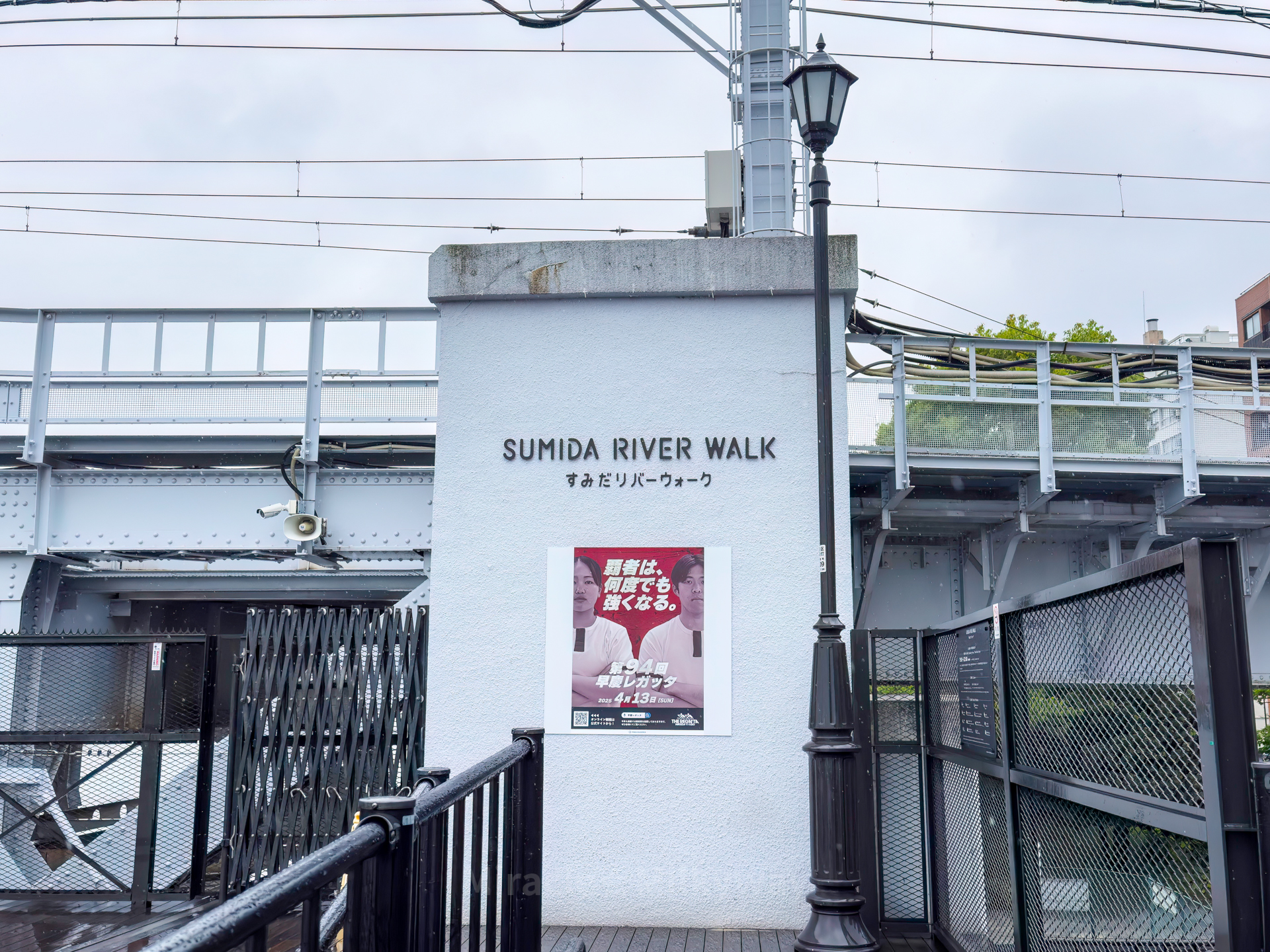 앞에 보이는 다리가 스미다강을 건널 수 있는 도보교, '스미다 리버 워크(すみだリバーウォーク)'입니다.