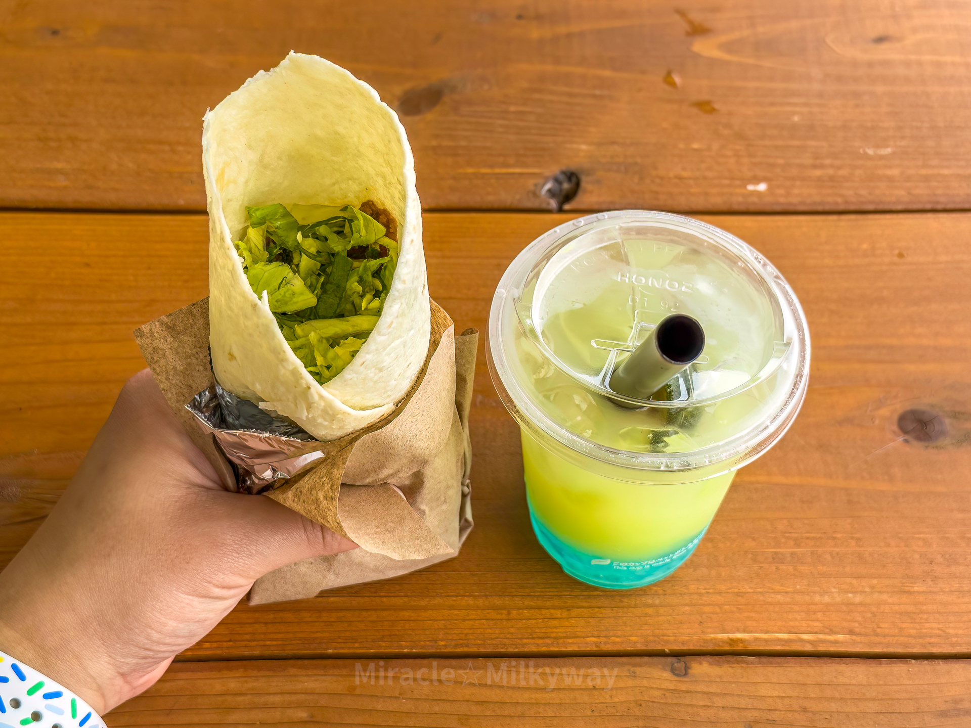 공원도 식후경을 해야 하지 않을까. 점심밥으로 멕시칸 푸드트럭에서 부리또를, 음료 트럭에서 젤리가 들어간 레몬에이드를 샀다.