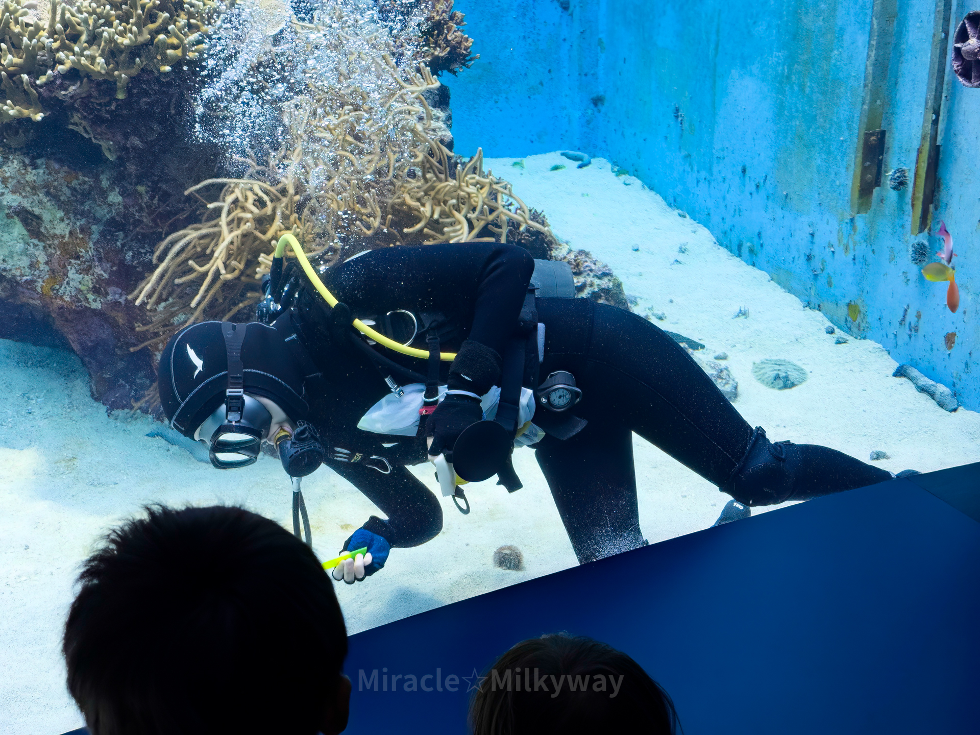 뭔가 중년 남성의 얼굴처럼 보이는 녀석, '큰양놀래기[각주:3]'라고 한다. 일어 이름을 직역하면 대강 '안경잡이 생선'인 거 같다.