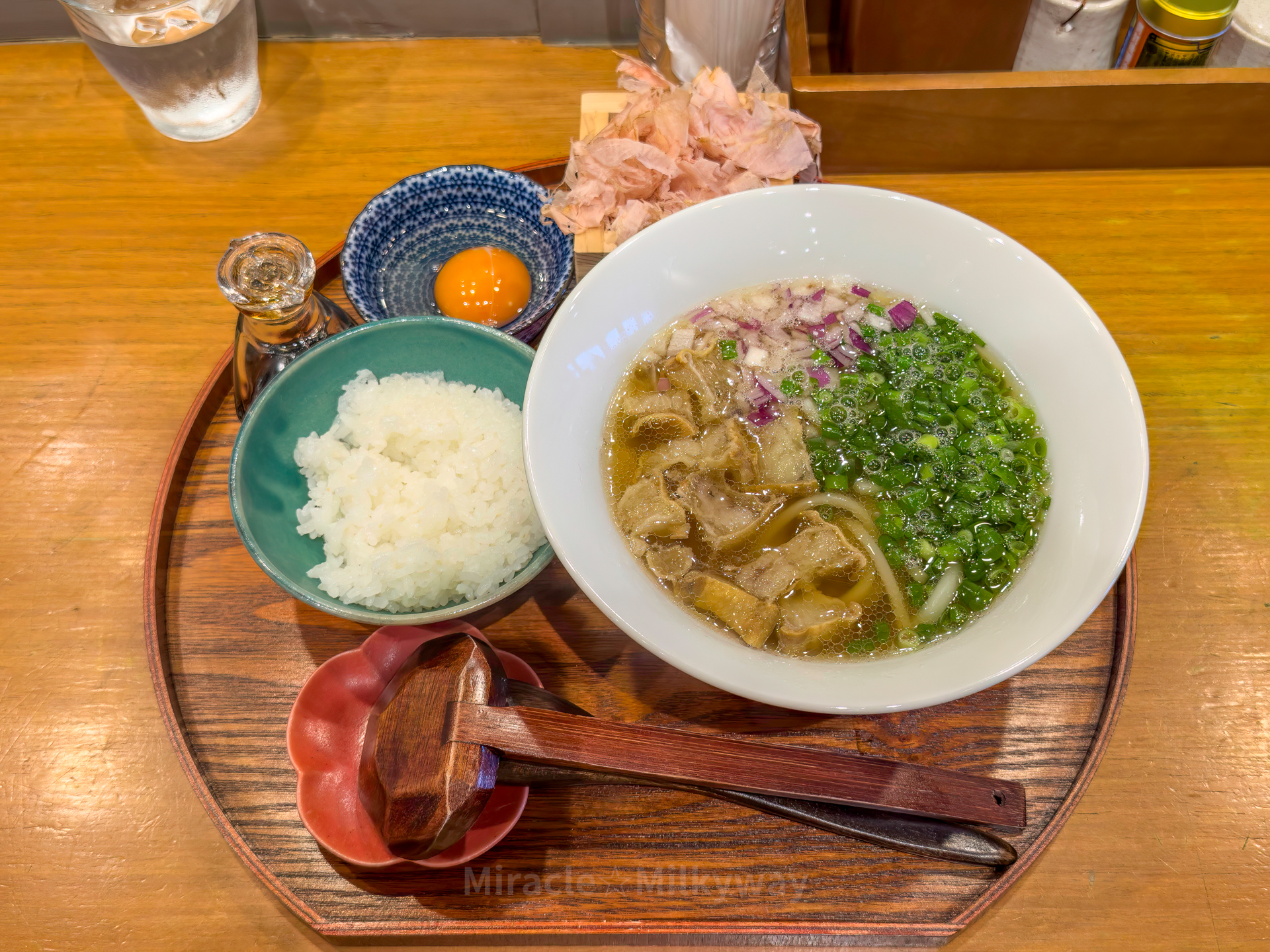 막 갈아낸 듯한 가쓰오부시를 밥에 얹고, 그 위에 달걀 노른자를 떠서 얹어 비빈 후 간장을 뿌려 먹으면 된다. 우동과 덮밥 모두 정말 맛있었다!!