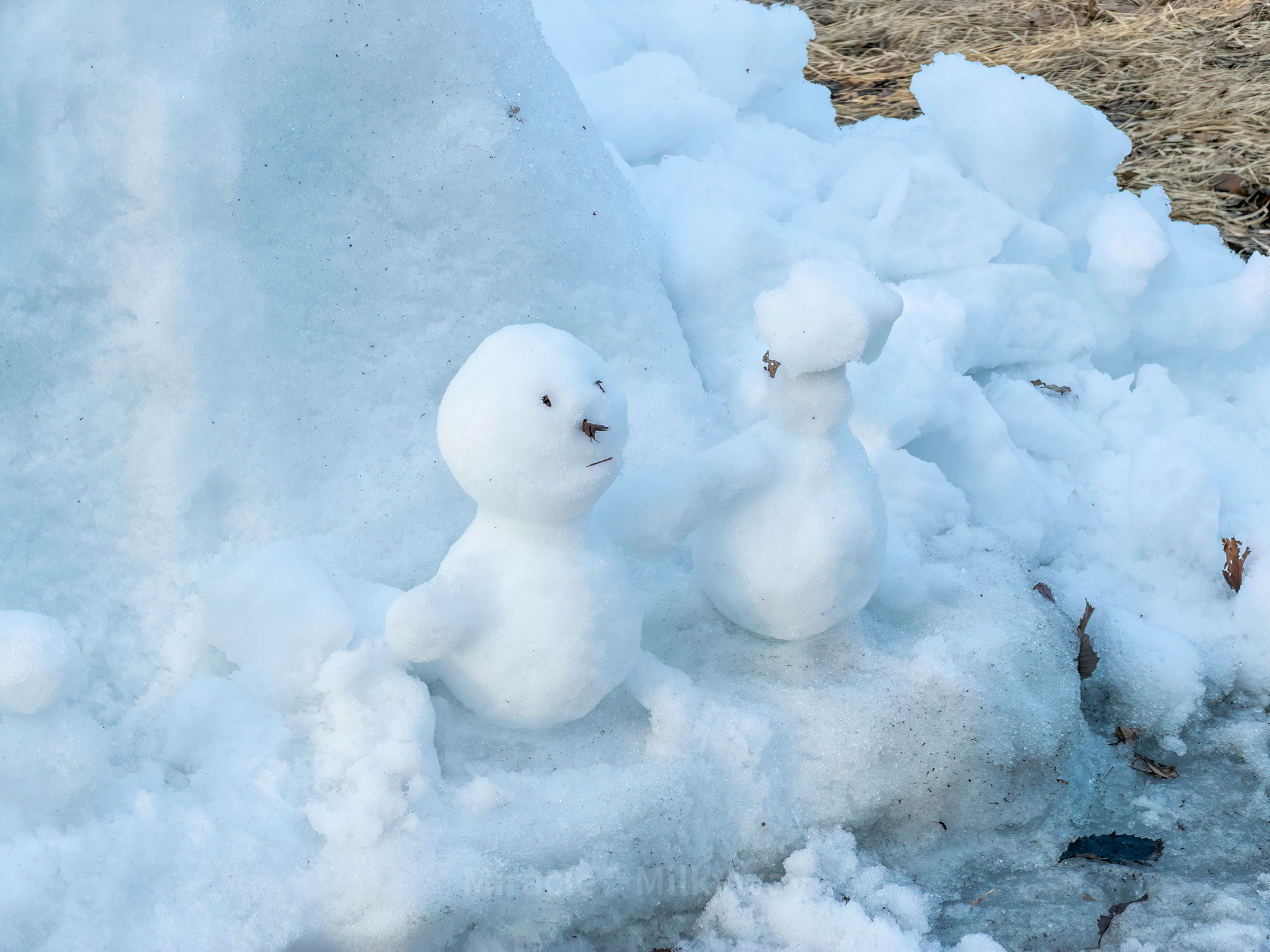 섬 북쪽의 '천의 바람이 되어(千の風になって)' 기념비에 갔더니, 쌓인 눈으로 귀여운 눈사람이 만들어져 있었다.