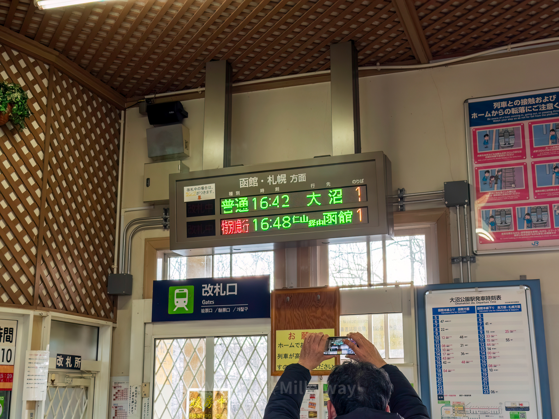 도시락을 음미하며 기차를 타고 있으니, 고마가타케 역 부근에서 선로 용량으로 인해 약 10분쯤 정차해 지연된 후 오오누마공원 역에 도착했다.