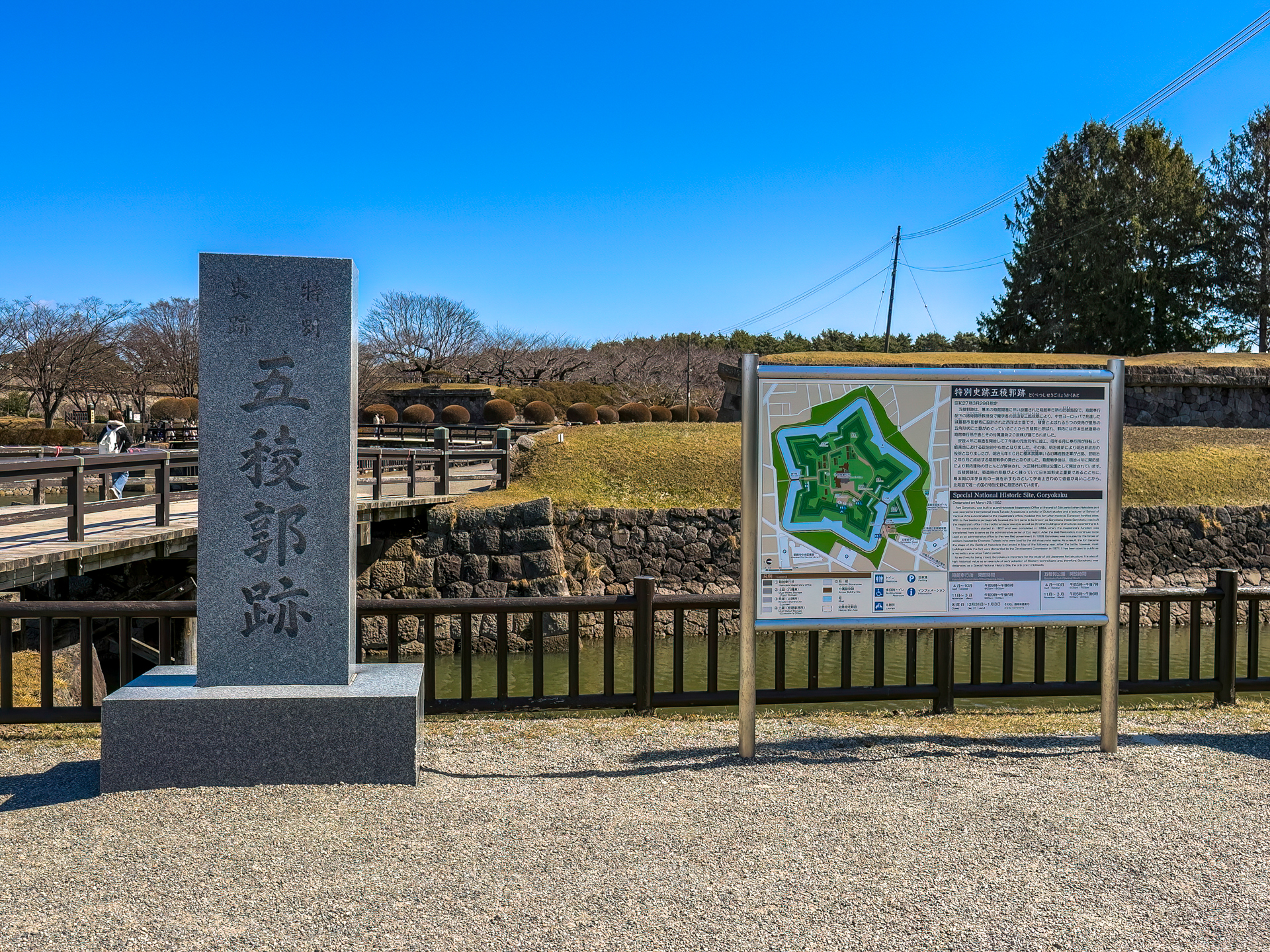 코앞에 있는 고료카쿠 성 앞에 도착하니 비석과 함께 안내도가 배치되어 있다.