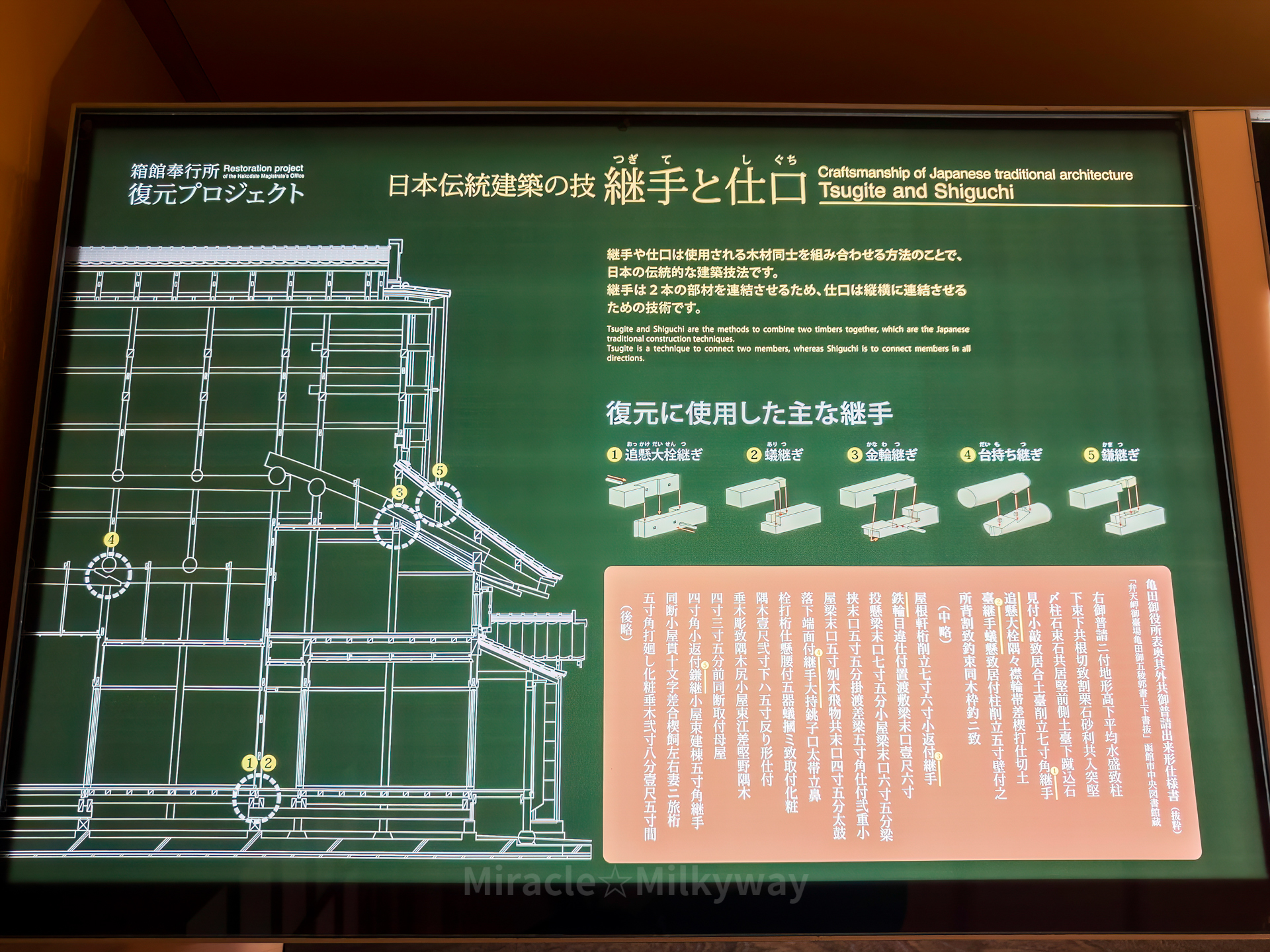 내부에는 과거 사용했던 가구와 장식, 문화재, 봉행소에 사용된 건축기술 등에 대한 설명 등이 있었다.