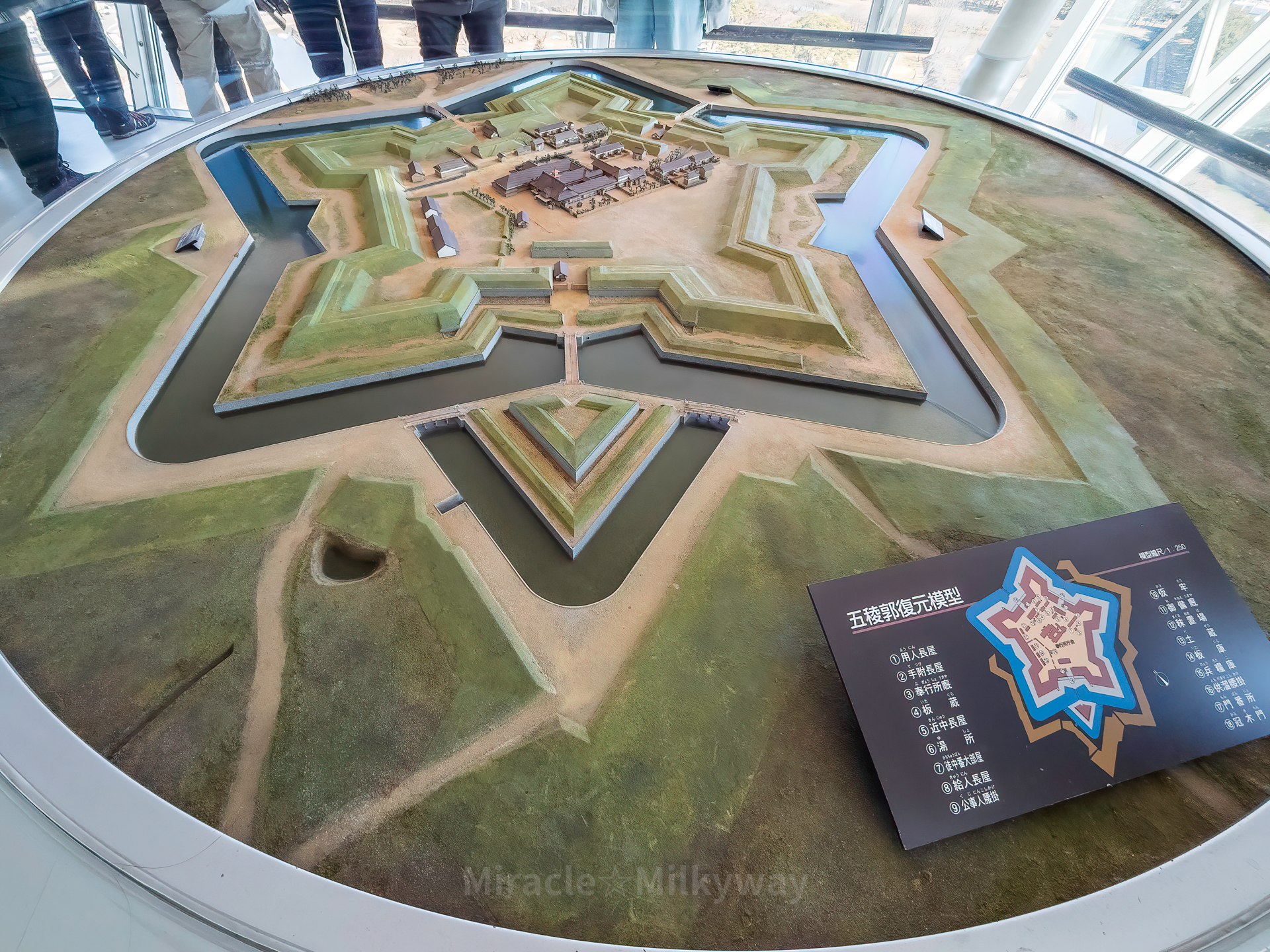 올라가니 처음 보이는 건 고료카쿠의 모형과, 관련된 서양 선박의 접근 및 개항 시기의 역사 설명이다.