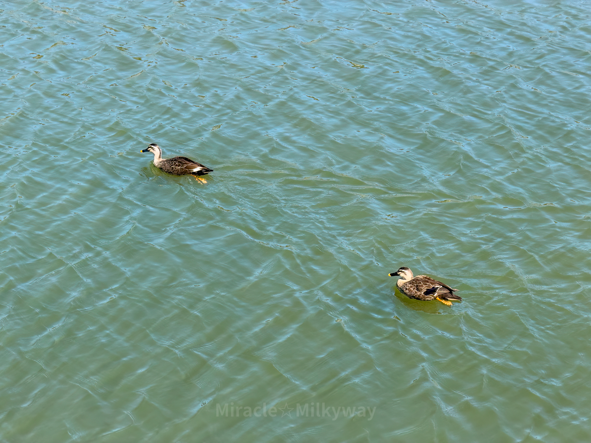 해자를 여유롭게 헤엄치는 오리들. 귀엽다