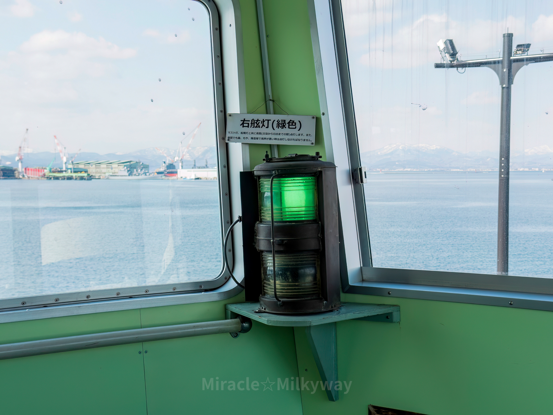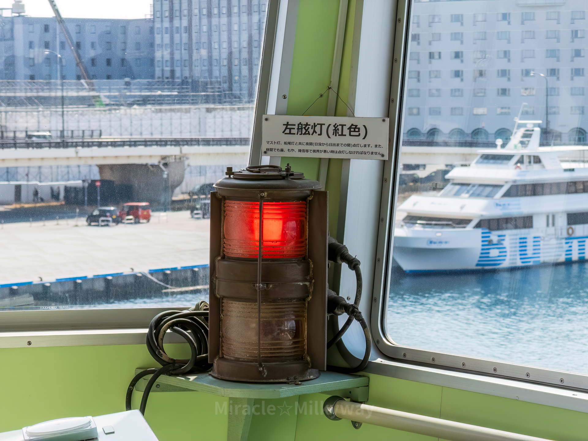 함교 좌우 창가 쪽에는 아까 모형에서 봤던 항행등이 실제로 켜져 있었다.