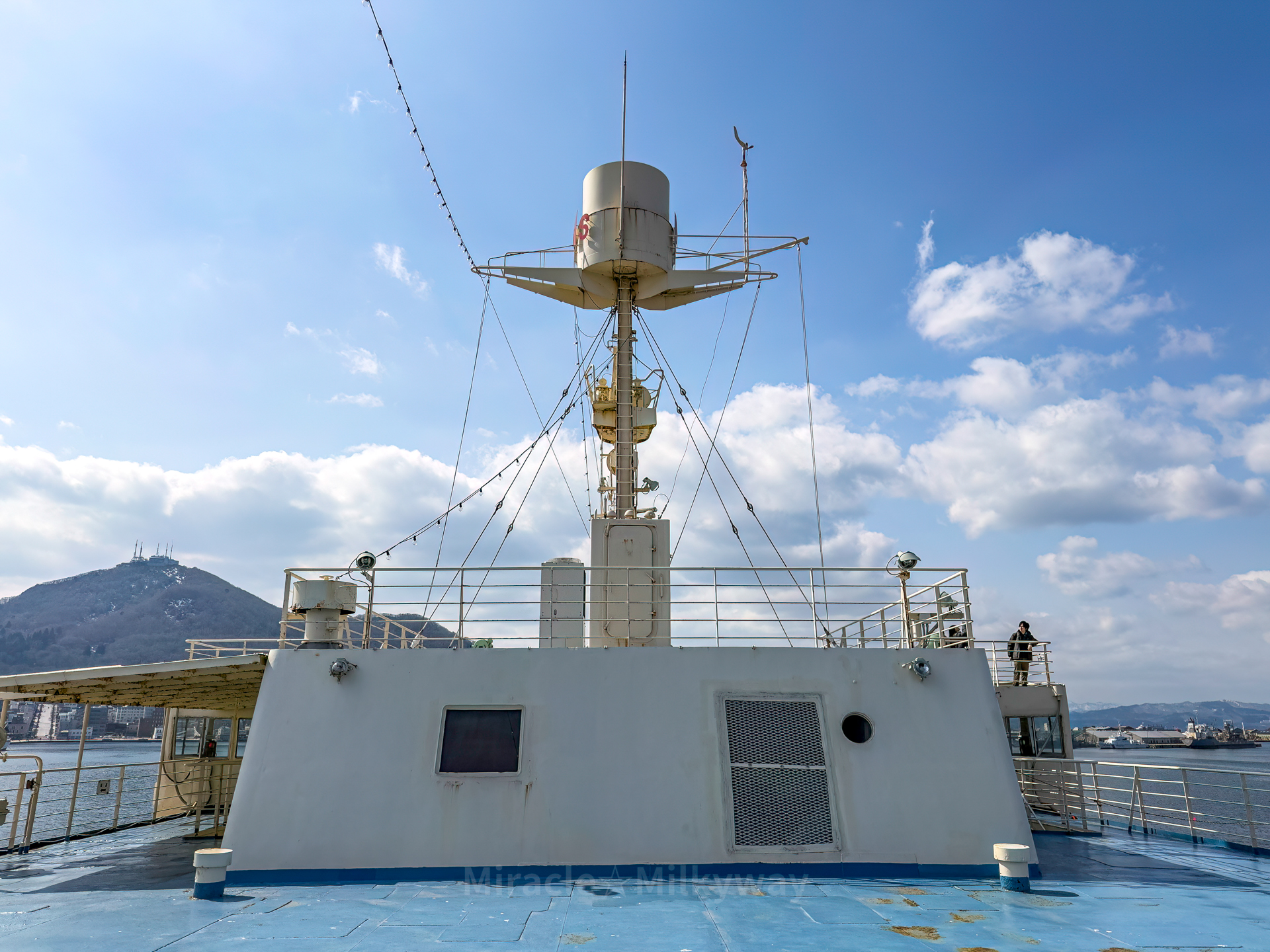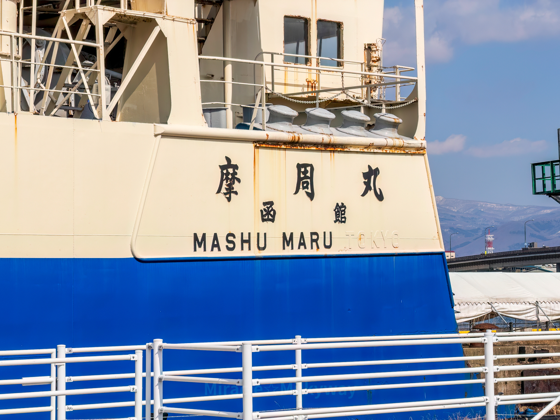 그 옆으로 고개를 돌리면 바로 거대한 선박이 한 척 서 있다. 하코다테산 전망대에서도 내려다 봤던 배. 아오모리(青森)와 하코다테(函館)를 연결한다는 의미에서 세이칸(青函) 연락선인 '마슈마루' 호다.