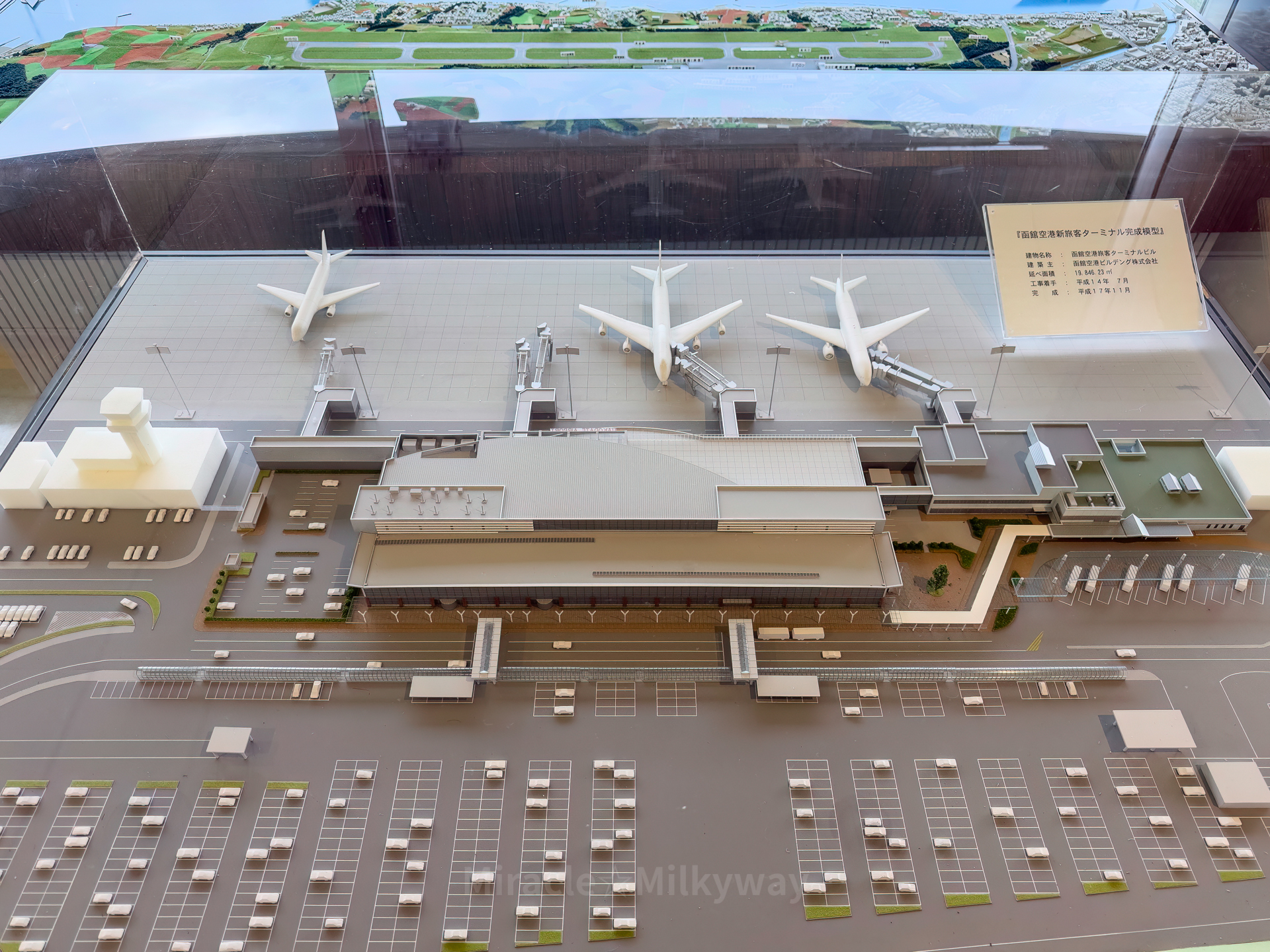 아까 있던 전망대와 하코다테 공항 이름을 바라보며 푸시백