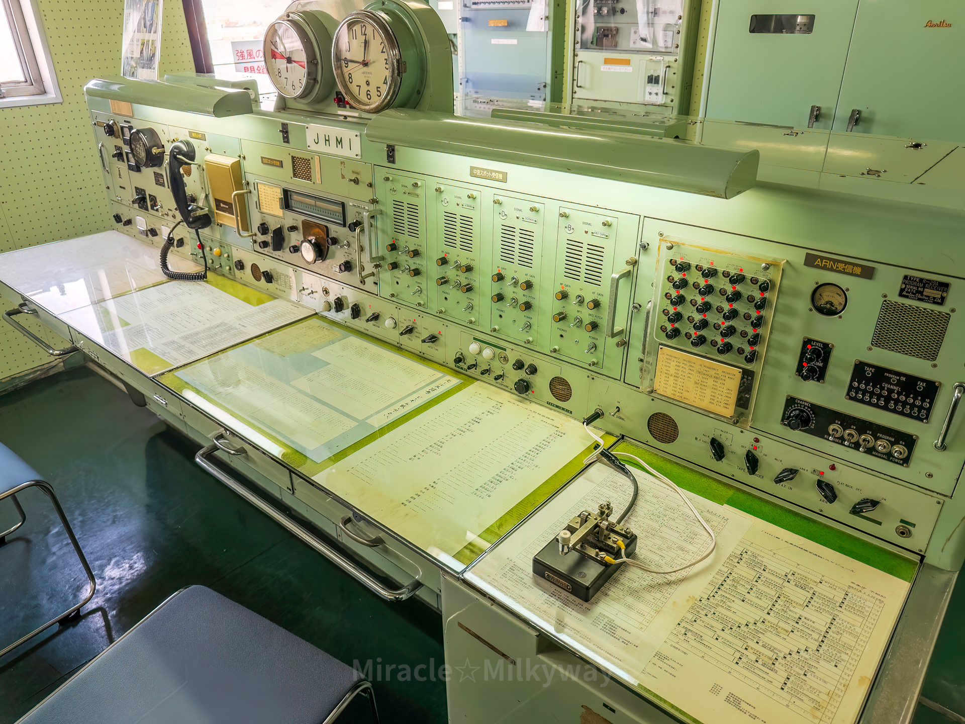 그 반대편에는 무선실 입구가 있었다. 이 선박의 호출부호인 JHMI가 쓰여 있고, 오른쪽 아래에 놓인 전신기를 누르면 실제로 소리가 난다. 전신기 왼쪽에는 모스 부호 설명이 출력되어 직접 원하는 문자를 전신기로 보내볼 수 있었다.