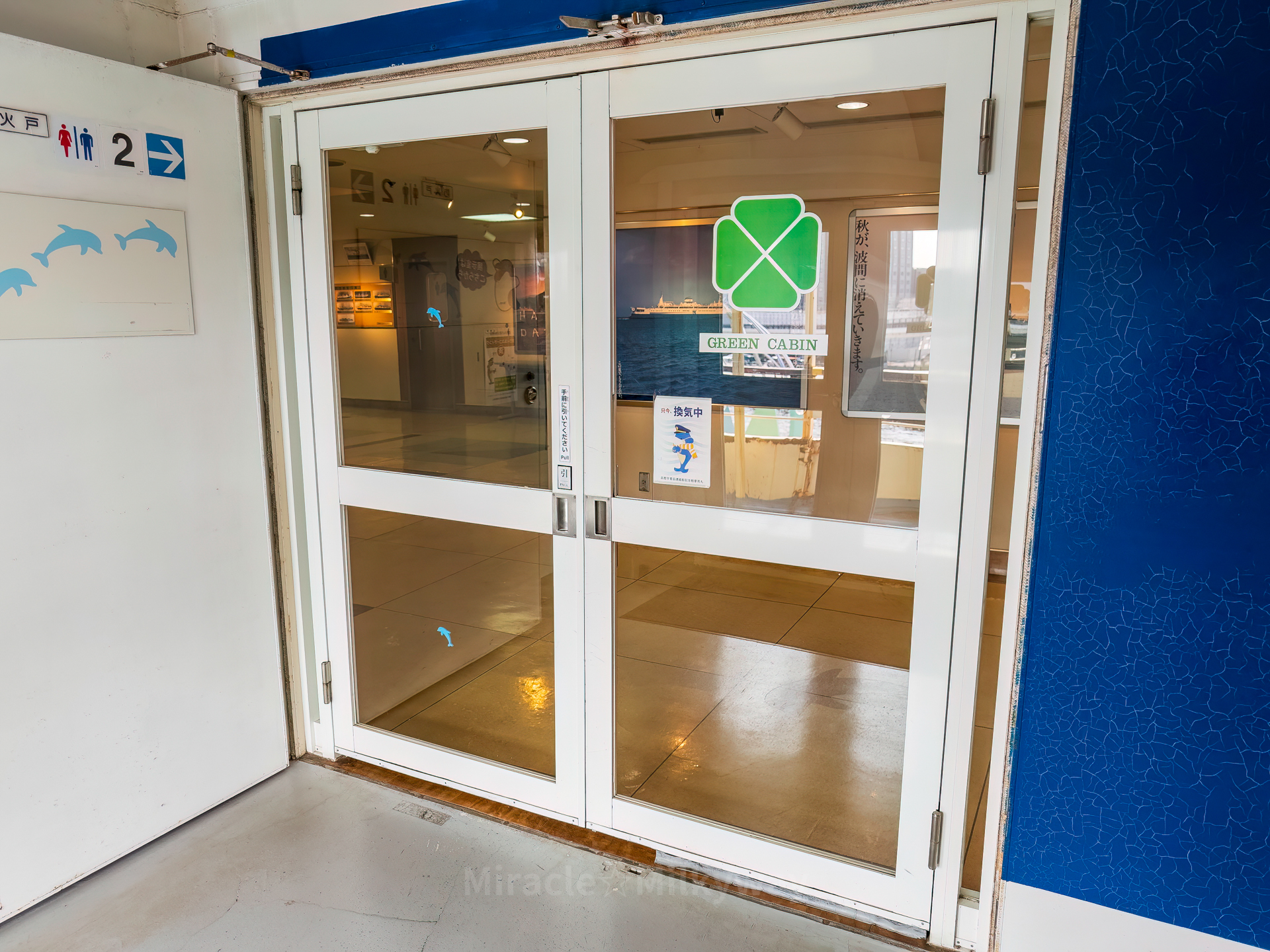 그 방향으로 난 계단을 올라가면 3층 덱 내의 선실로 들어가는 문이 나온다. 현재 JR 열차의 특실로 '그린샤'가 있듯, 여객선에는 과거 2등 선실인 '그린캐빈'이 있었나보다.