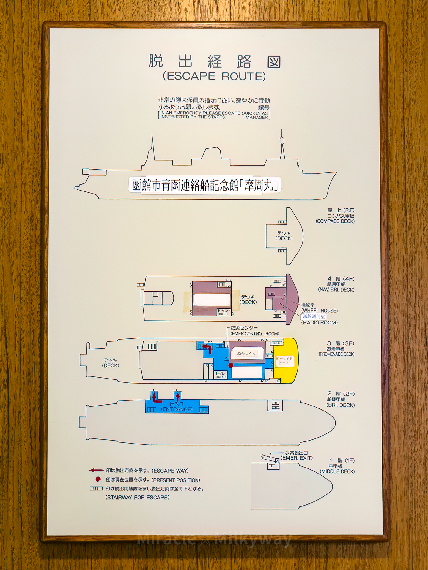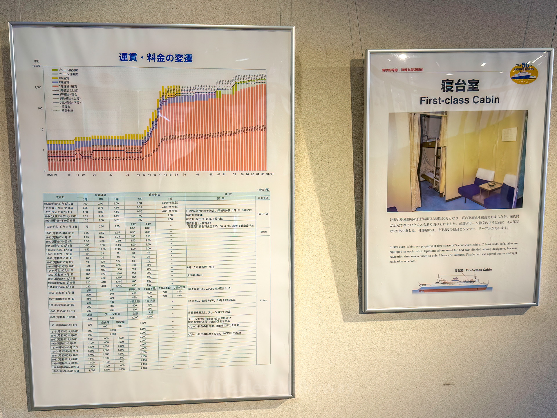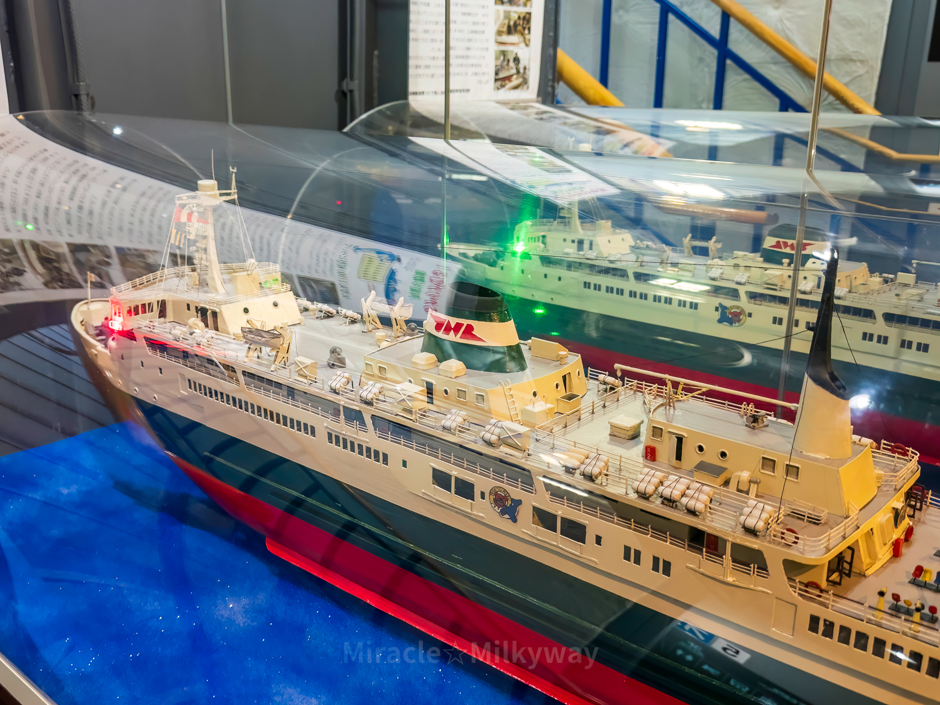 둘러보니 선박의 모형 두 가지가 있었다. 이 연락선의 1층 후방은 철로와 직결해 열차를 탑재할 수 있는 구조로 되어 있는 점이 무척이나 신기하다.